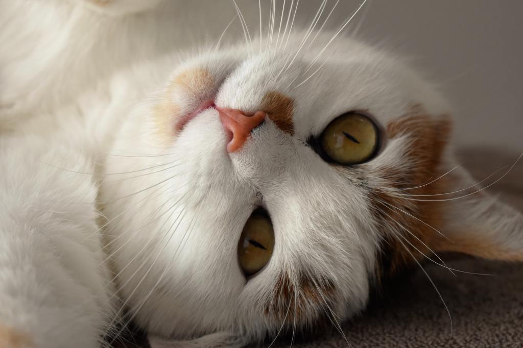 Moïse se baisse et attrape un chat calico aux poils longs. Il le regarde, le caresse, le pose sur son épaule – en le maintenant avec son bras gauche -, tout en le caressant de la main droite. Le chat ronronne à tout rompre, manquant de s’étouffer. Il frotte son museau de manière énergique contre l’oreille de Moïse, puis tourne la tête et lui mordille le nez. Moïse lui gratte l’arrière de l’oreille, puis passe son doigt sous le cou du chat, ce qui a pour effet immédiat d’augmenter le volume de « la machine à câlins ». Moïse s’approche d’une ardoise accrochée au mur, puis murmure au chat : – Quelqu’un qui vit avec un chat comme toi, ne peut-être foncièrement mauvais.