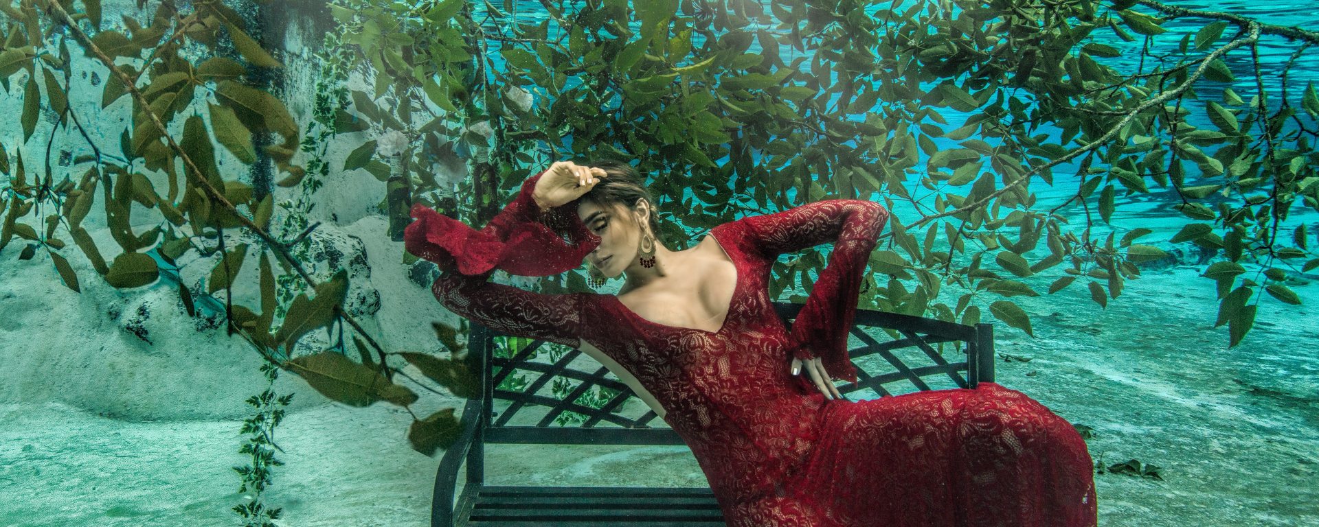 Moïse ferme les yeux, compte sur ses doigts puis regarde droit devant-lui. Yaël est à présent dans l’eau, assise sur un banc. Elle s’appuie sur son coude droit, tandis que de la main gauche, elle se tient le côté, l’impact de la balle. Sa robe est identique mais de couleur pourpre. Moïse observe cette scène surréaliste. Est-ce qu’il rêve ? Le banc est posé sur un carré de sable, les feuilles sous-marines se confondent avec l’eau turquoise. Yaël ouvre les yeux, regarde Moïse fixement et lui dit :