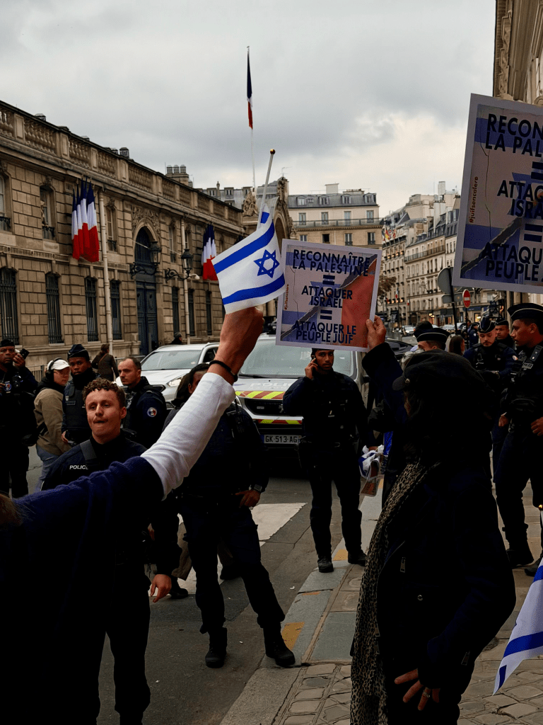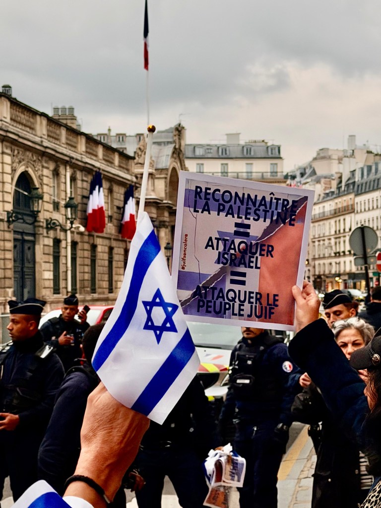 Céline François Dorphin : Parce que cette décision dépasse une simple posture diplomatique : elle met en danger la sécurité des Français juifs. En reconnaissant un État palestinien dans le contexte actuel, le Président a choisi d’imposer sa vision contre l’avis de 71 % des Français. C’est une véritable rupture de confiance. Nous avons donc décidé de faire entendre notre voix autrement : de manière spontanée, mais toujours pacifique et républicaine.
