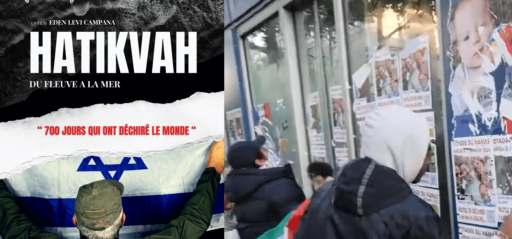 L’équipe du film a voulu transformer cet acte de destruction en acte de mémoire : l’affiche de HATIKVAH reprend la métaphore de l’affiche déchirée et la détourne pour en faire un cri d’espoir, une interpellation au monde entier. De la même façon, l’équipe a choisi de détourner le slogan génocidaire « From the river to the sea » pour en faire le sous-titre positif du film : « Du fleuve à la mer ».